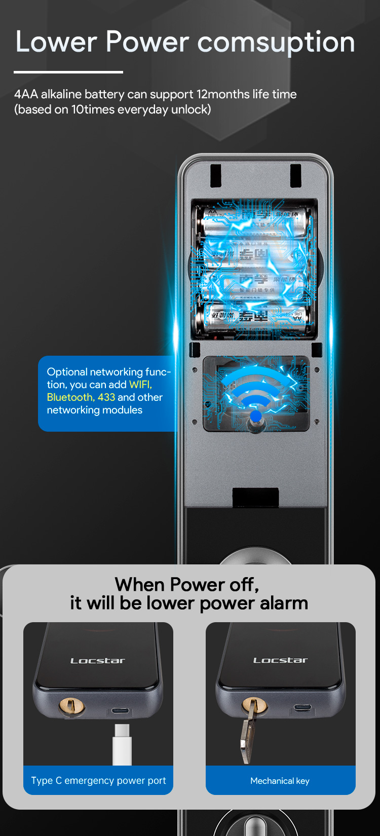 - يدعم بصمة الإصبع/البطاقة/كلمة المرور/المفتاح
